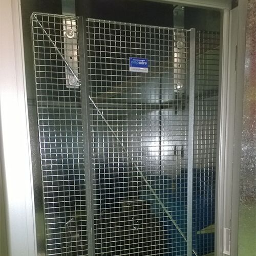 Our wire mesh Door Guards & Screens are manufactured to your specification and are usually manufactured from ½” mesh (12.7 x 12.7 x 1.6mm) in mild steel or stainless steel (304 & 316 Grade).